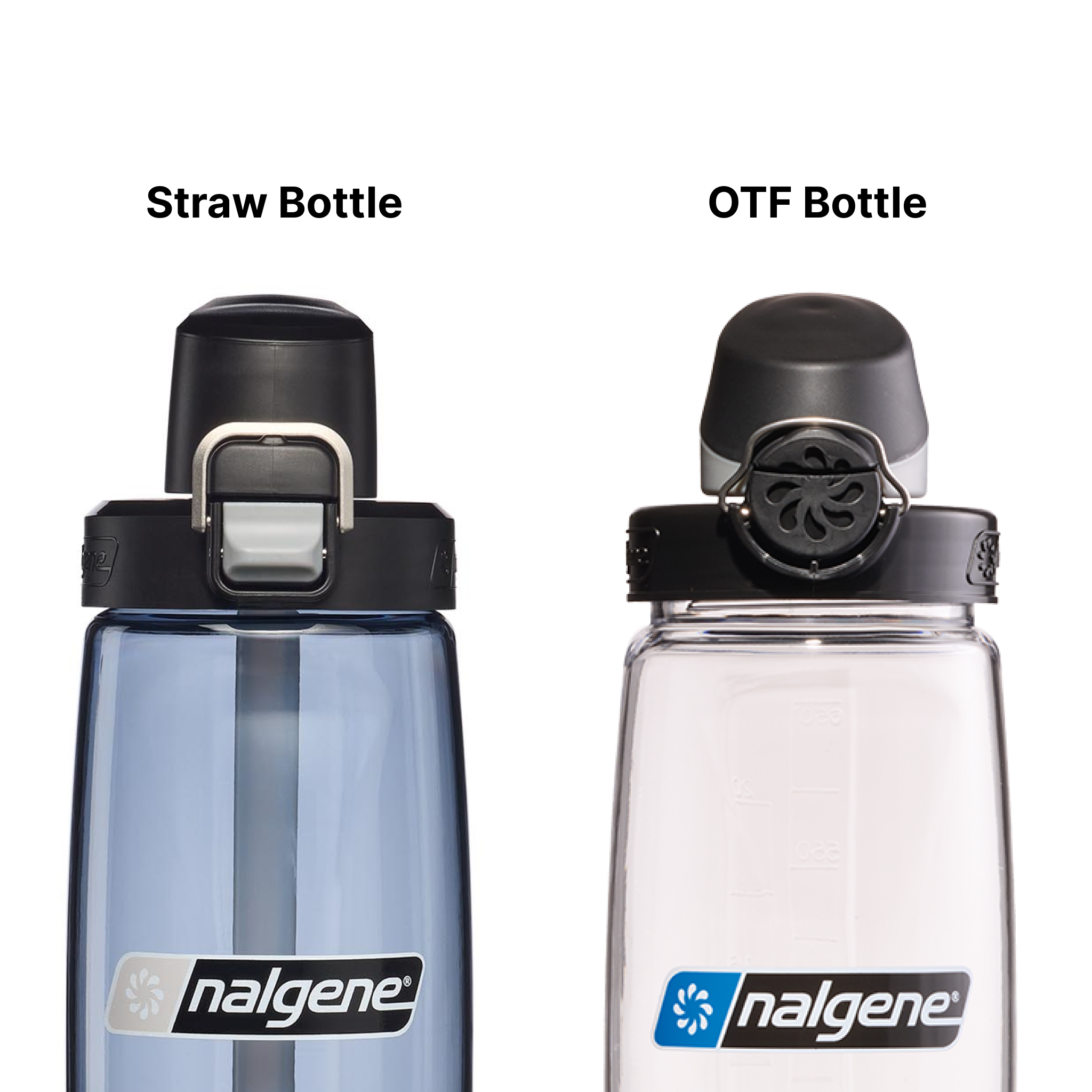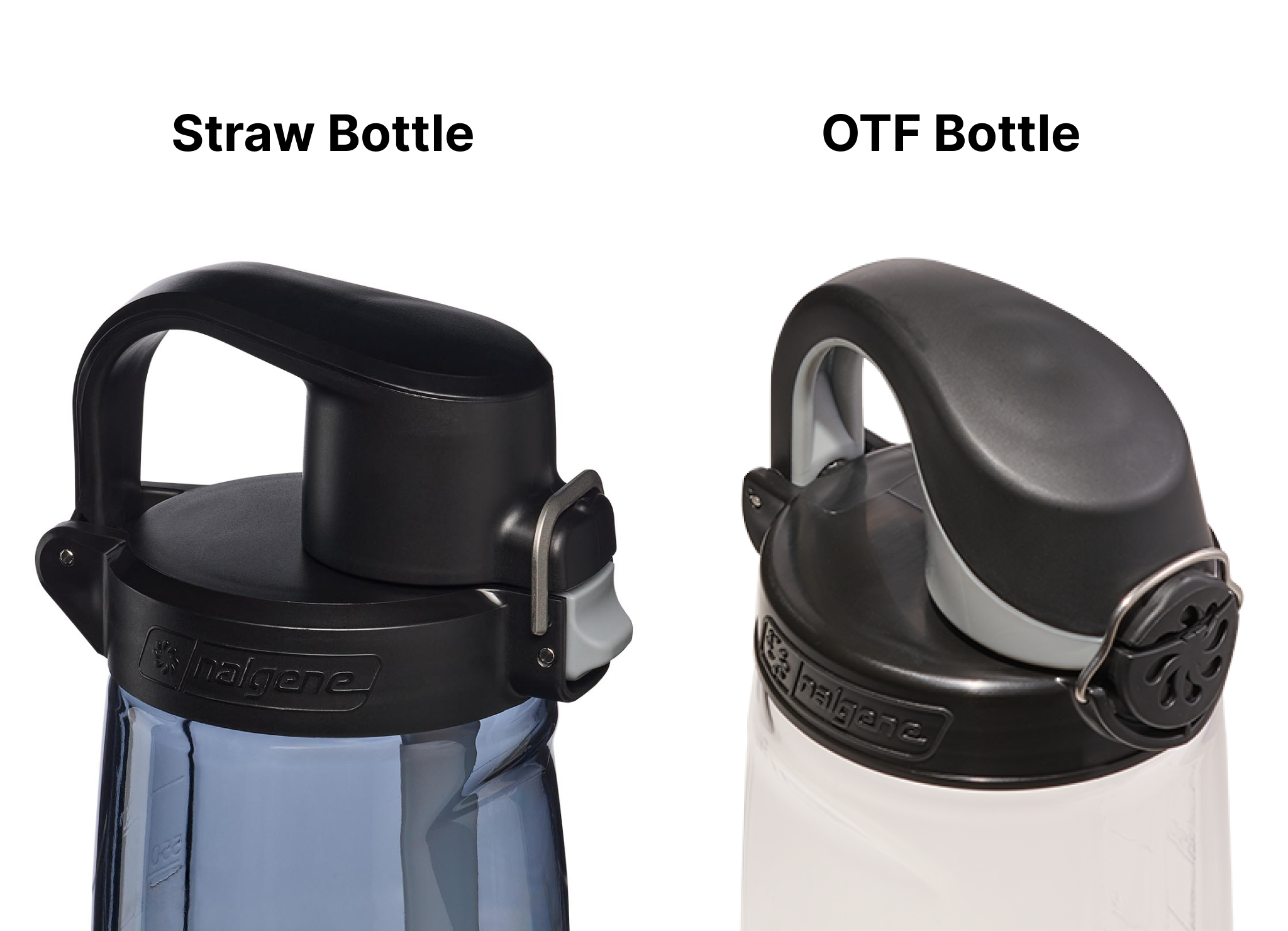 - The lid on the new straw bottle utilizes a more robust metal clip and locking mechanism. Rather than a push button latch like on the OTF, it uses a pull-down latch to open, although both bottles boast easy one handed operation.